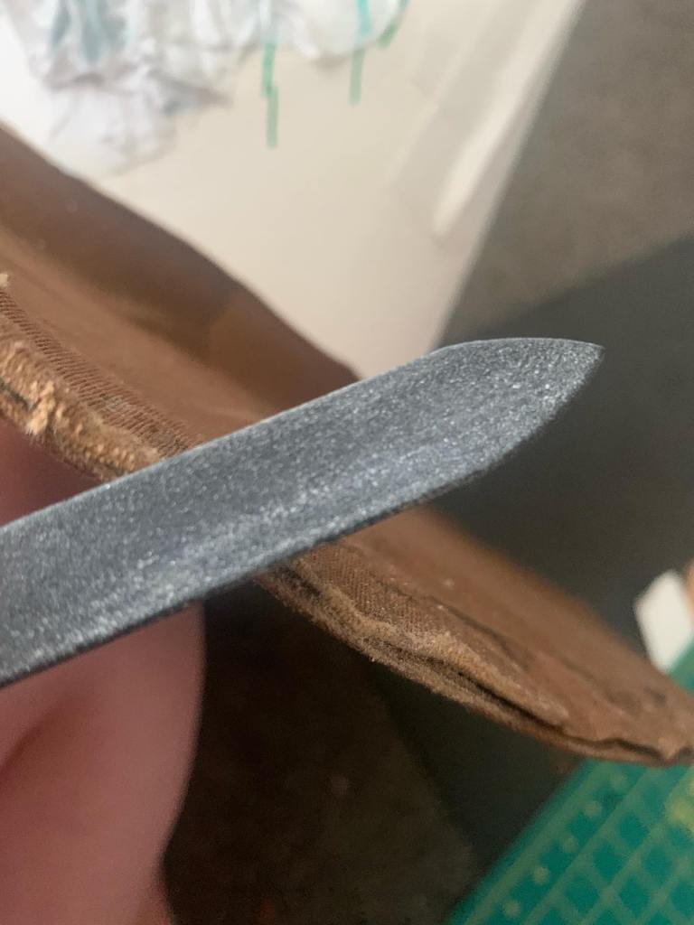 I used a nail file (you can use sand paper) to add weathering along all the edges that I thought called for it. Use your imagination to think of where wear and tear would occur and go to town on it.