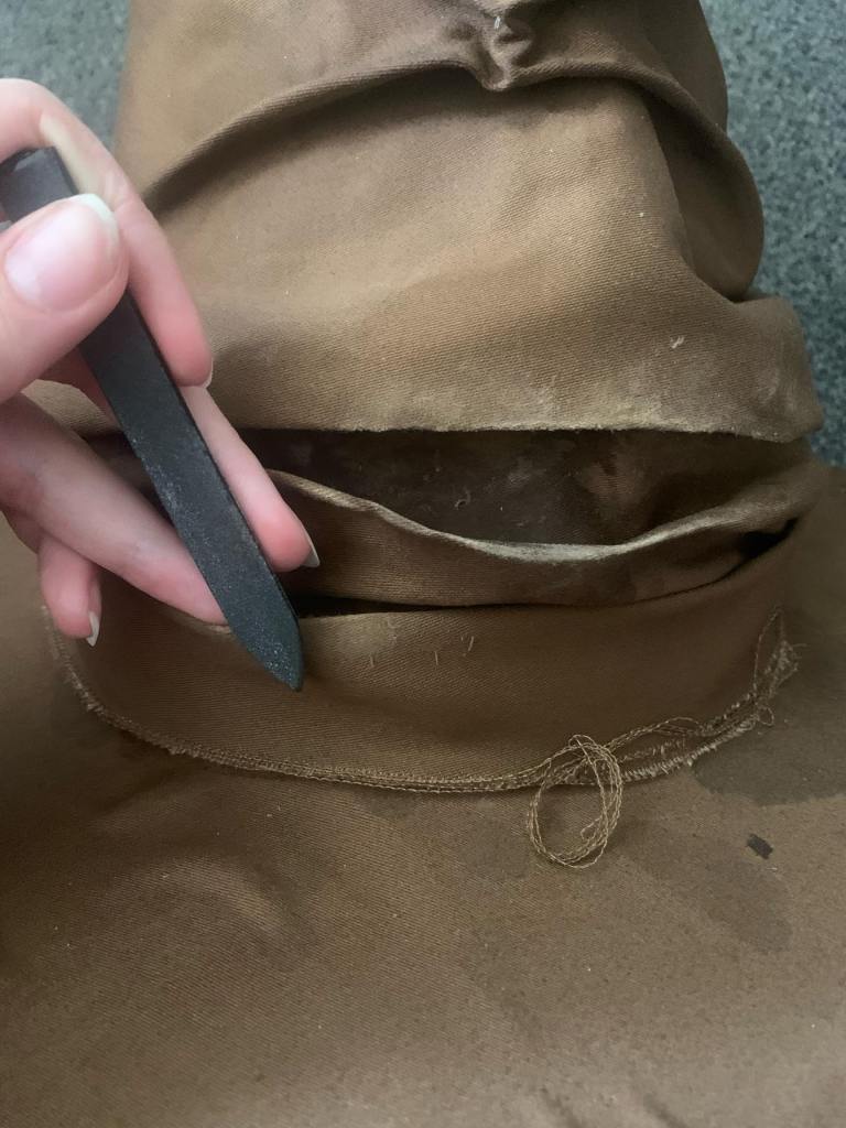 You might also find you have to misshape the card cone underneath to get shapes you want. That’s totally fine! Remember, this hat is meant to be hundreds of years old. He’s meant to be a bit battered.
