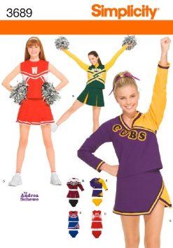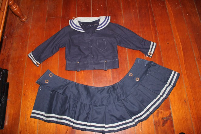 This is also how I used up all the mystery velvet fabric. See I’d brought enough to make the cheerleader uniform that the Simplicity pattern called for. By doing all the box pleats, it ate up all the fabric and I had to find a substitute for the top.