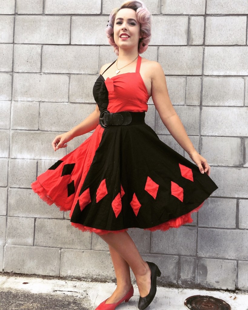 I came across this photo of a rockabilly Joker and Harley Quinn when searching for vintage Harley Quinn inspiration for my trip to Mickeys Not So Scary Halloween Party at Disney World. It was love at first sight and I knew I had to recreate it.