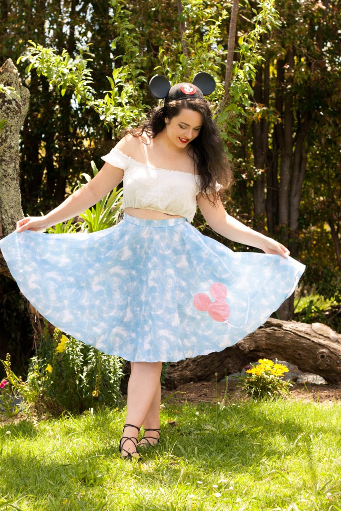 Background : This skirt was inspired by my last trip to the Magic Kingdom at Walt Disney World in 2019 and the baby pink Mickey balloons against the blue Florida sky. I thought, wouldn’t it be cool to do a poodle skirt version of it? And that’s how the idea came to be.