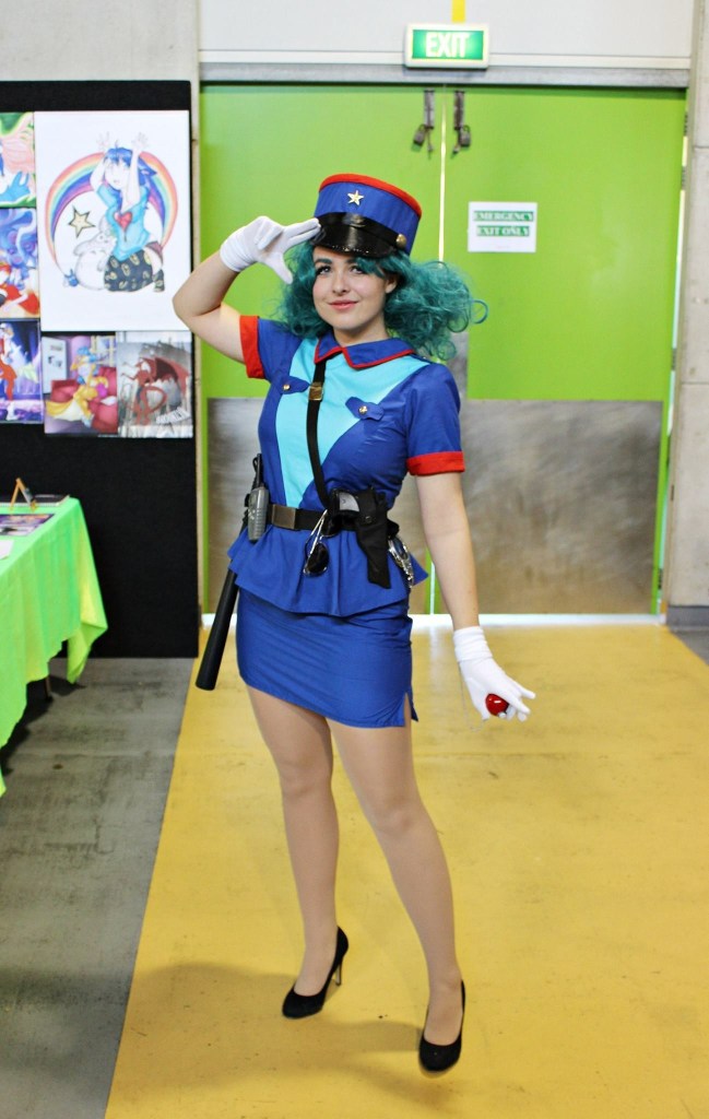 Soph and I thought it would be really funny to add a bunch of policey things to the belt so we picked up some stuff at the dollar store which included – a fake gun (because of that one banned episode), hand cuffs, a police baton, Poke repel (which was silly string that Soph made a label for), and some other items that we had laying around – actual walkie talkies, a torch, Pokeballs and some aviators.