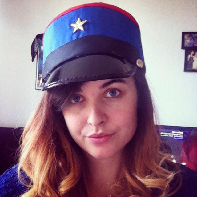 I also glue a gold star button (which had the back shank sanded off) to the center front of the hat.
