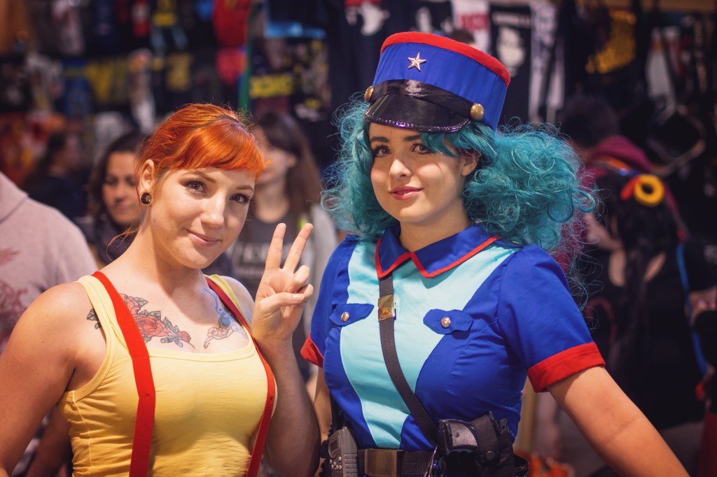 Wig : Sophia and I got matching green/teal wigs from eBay. They were generic anime wigs. She came up with the idea of tying them in two ponytails in the back and then back combing all the curls to create two distinct puffs. She then helped me with the styling of the anime fringe using lots of Got2Be to hold it in place.