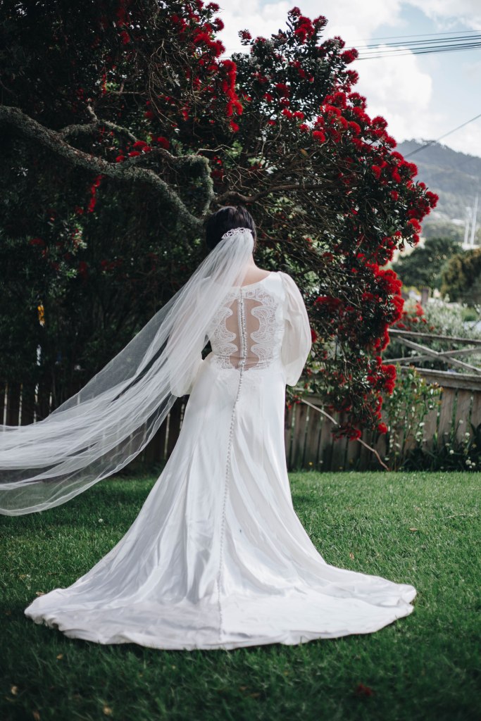 Cameron and I donned our wedding garb on Wednesday and I was so nervous that I wouldn’t fit mine anymore but I needn’t have worried. We then had Anna of Anna Terwiel Photography snap a few quick photos of us. I even managed to get the one shot of my gown that I really wanted to take on the day but didn’t. It was of the back of it to showcase all the detail but I’d forgotten to because of being swept up in all the excitement on the big day. I’m thrilled with how it turned out and so thankful that my wedding album is now complete.