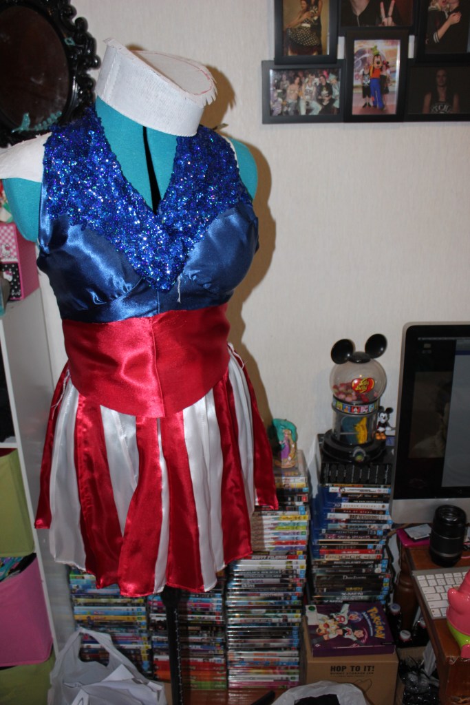 I want to preface by saying every part of this costume apart from the top was made using the pattern drafted by Kathy KayDee. She has shared a free pattern and a wealth of knowledge in her group on Facebook – Captain America Dancing Girls – Costume Construction Group.
