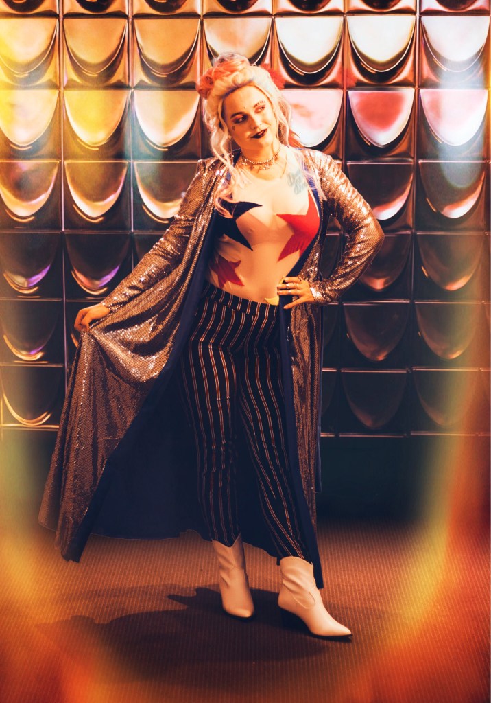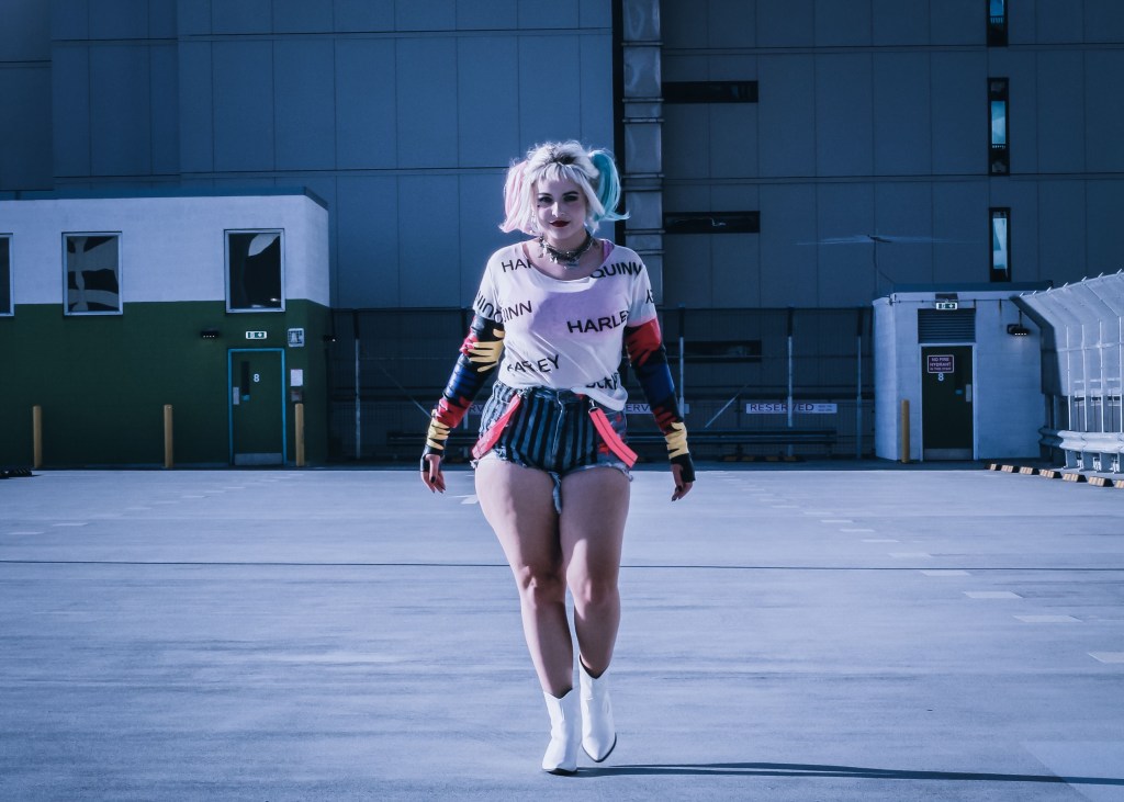 Overload may have only been a one day convention but I managed an outfit change. I had a photo shoot teed up with Mobro Photography, while he was in the area so I walked back up Queen Street, got changed and then walked all the way back down again, this time wearing one of my Harley Quinn Birds of Prey outfits that I hadn’t yet worn in public but had made the year before also during lockdown. I didn’t have the time to do all my tattoos and I had the intention to photoshop them all on afterward but as you can see, that didn’t happen.