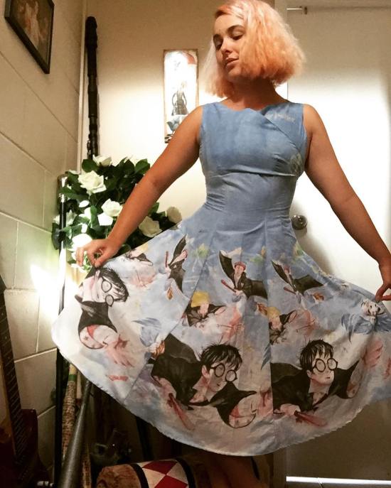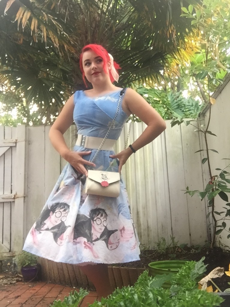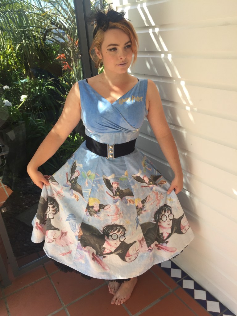 Upon buying it, I was unsure whether to turn it in to a dress or skirt. I was leaning more toward a skirt as the print of Harry, Ron and Hermione catching the keys was quite large and I didnโt think it would translate well to a dress. I put a poll up on my Instagram asking my followers which theyโd prefer to help me decide. It was really close right until the end, but the final tally was 60% for the dress and 40% for a skirt.