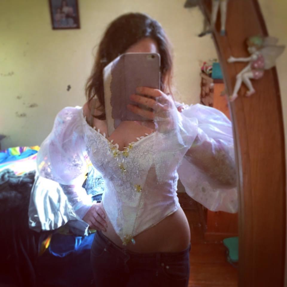 On either side of the original back pieces I put 15 eyelets down either side. The whole thing laces up with a white satin ribbon. I also like the final fit of a lace up anyway, as it really hugs to your body shape and has an overall slimming effect.