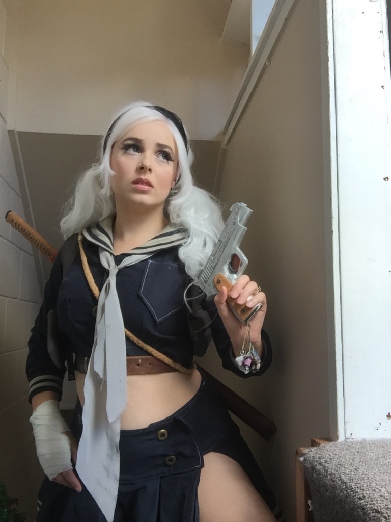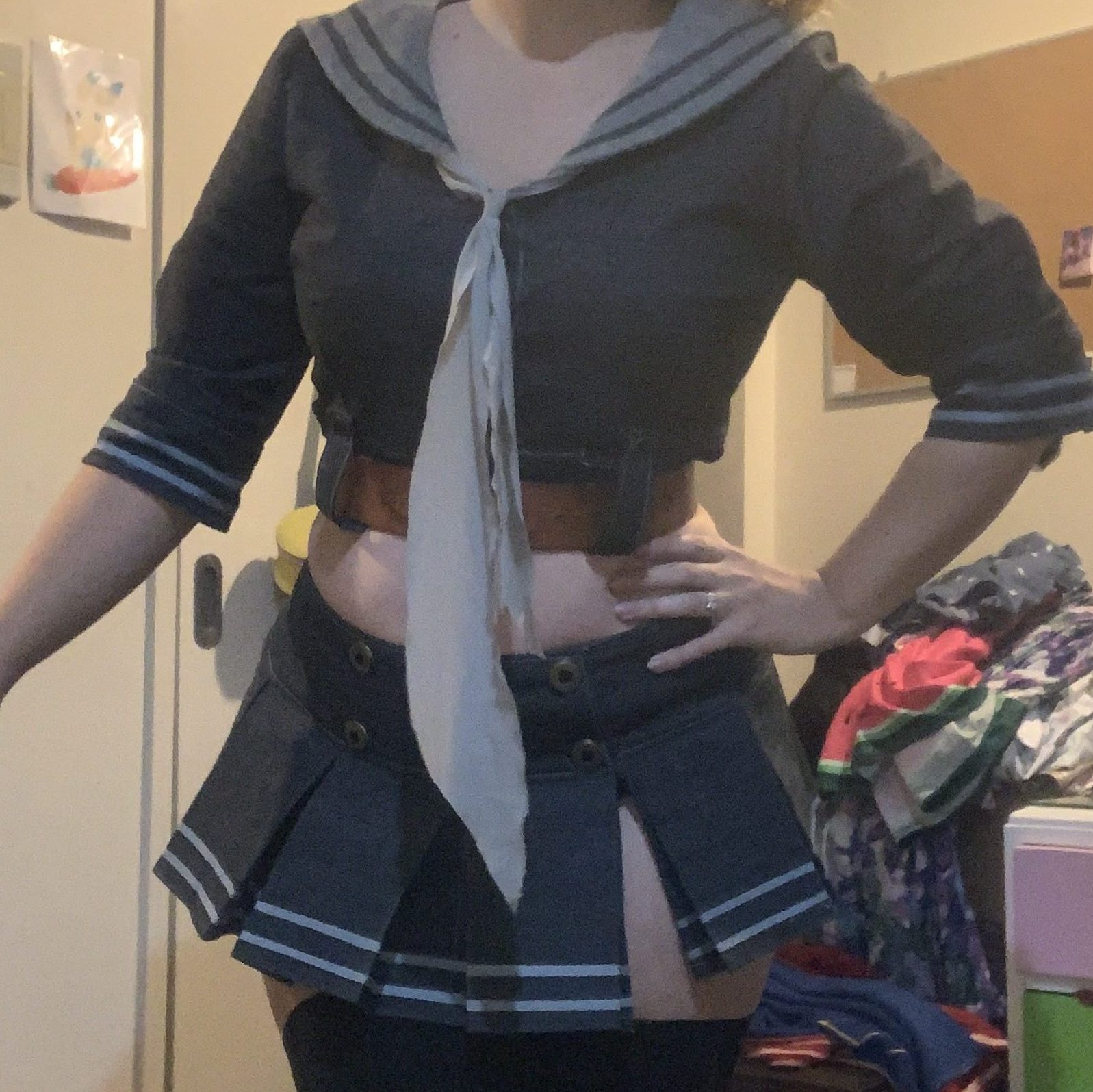 Compared to my first Babydoll, I much preferred the sailor collar on this one as it was one solid piece. I used Simplicity 8190 as a base for the top. I altered it so that there were buttons down the center front and cropped it to sit above the waist and put a waist band along this edge with belt loops. I also changed the length of the sleeves. I cropped them so they were elbow length but they should have been a fraction longer.