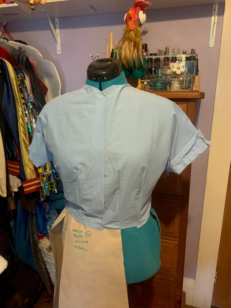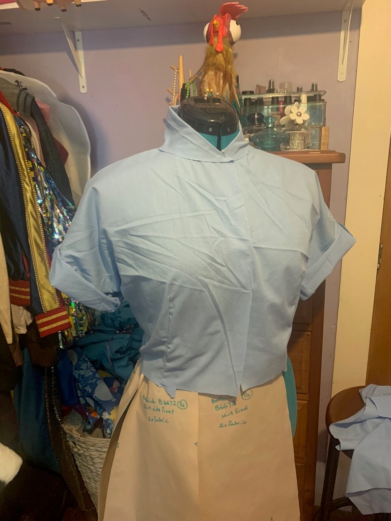 Other than that, it was relatively simple. I altered a basic bodice block pattern, added darts to the front where there needed to be two, added a button closure to the front and changed the neckline for the collar.