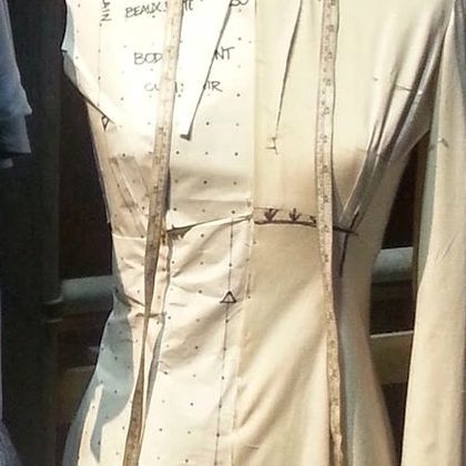 There are two bust/waist darts on either side of the coat which allows the front to be made from one panel.