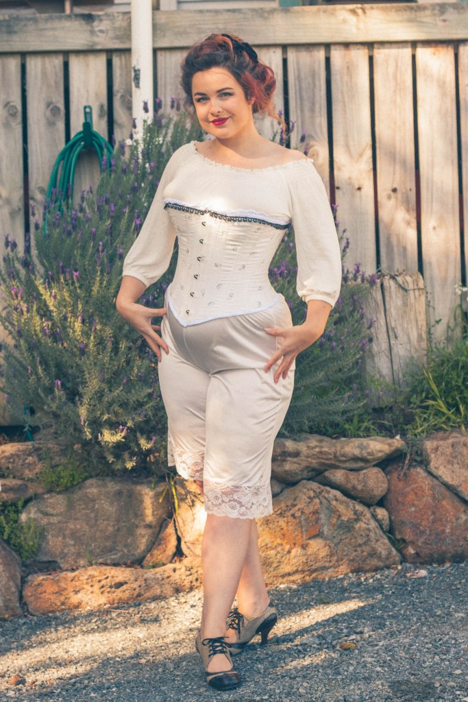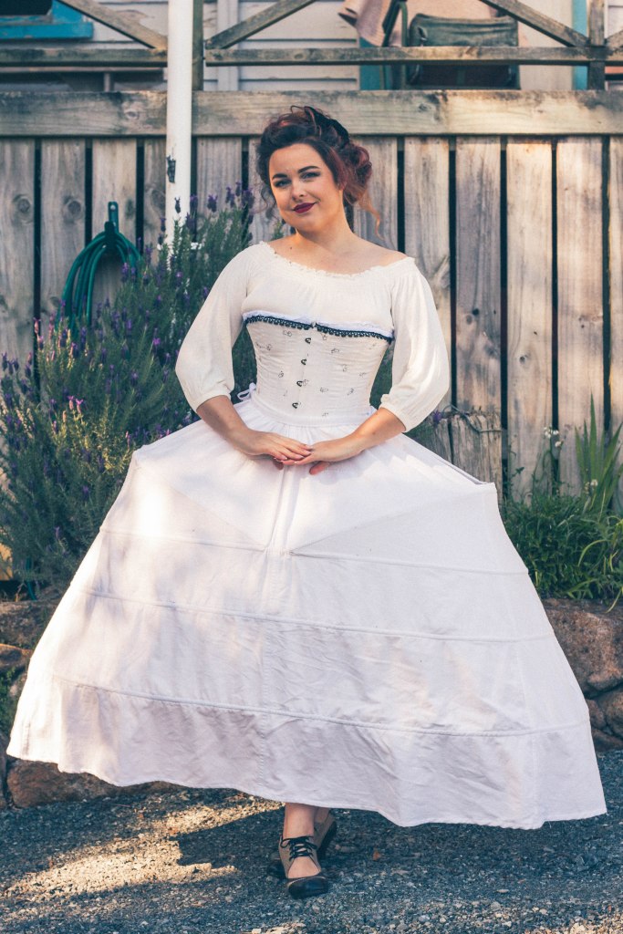 The most challenging part was inserting the front busk. I found the loop side straight forward but I messed up the bump side the first time I did it and had to cut a whole new section of fabric for it. I poked the bump holes to close to the seam line and therefore couldn’t actually do up the front.