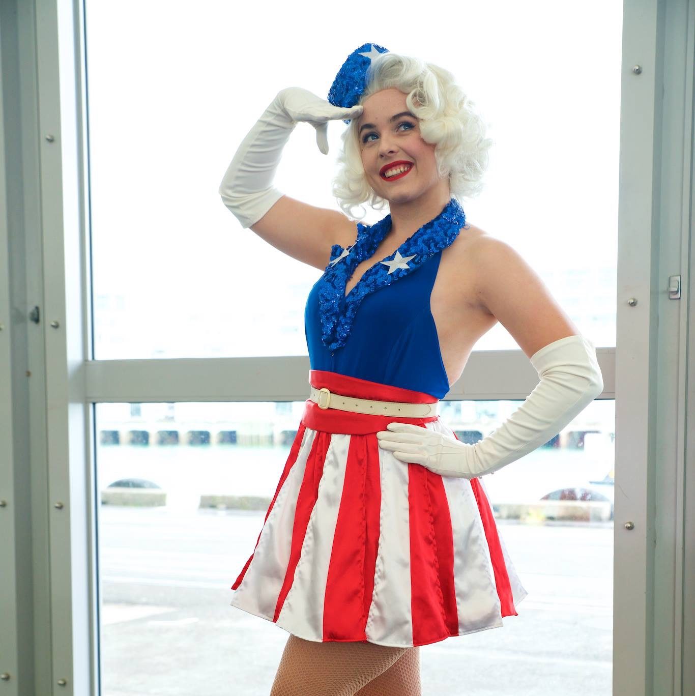 Background : I have a bunch of red velvet in my sewing stash. I was sent it from Spotlight during the very first lockdown for another project, but they sent me the wrong colour, twice! So I’ve sat on it for a couple years now wondering what to use it for when it hit me – Austin Powers suit. Naturally, I had to make a character to match. Originally I wanted to do Felicity Shagwellโs crochet dress but it turns out I really donโt know how to crochet. So Fembot it was!