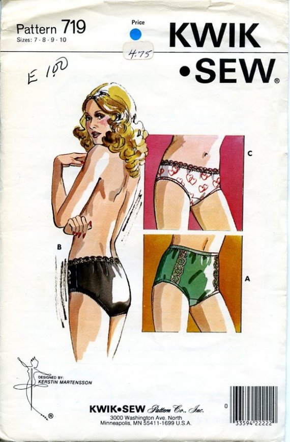 I made the underwear first using a vintage pattern Kwik Sew 719. I chose to make the high waisted ones as Iโm very self conscious about my tummy area and they provided a bit more coverage. It was a super simple pattern to put together. I sewed a size 9 for myself which fit my thighs perfectly but I had to take it in by about four inches on the waist. I also attached the elastic for the legs and waistband differently. I sewed them first using a zigzag stitch and then rolled it over itself and repeated. I just think It gave it a much nicer/cleaner finish then how the pattern called for.