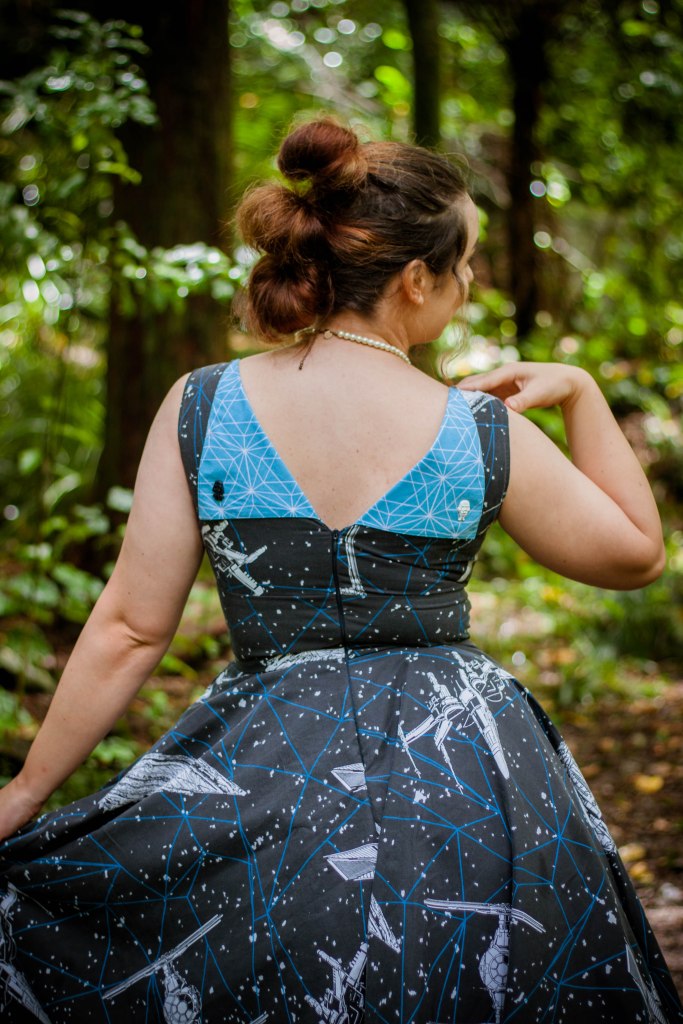I made some slight changes to the pattern. First I opted to leave out the built in petticoat. This is just personal preference as I like being able to switch out which colour petticoat and itโs fullness depending on my mood.