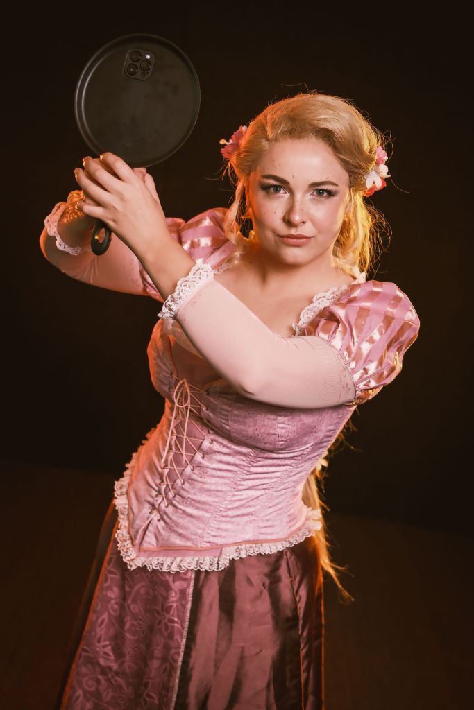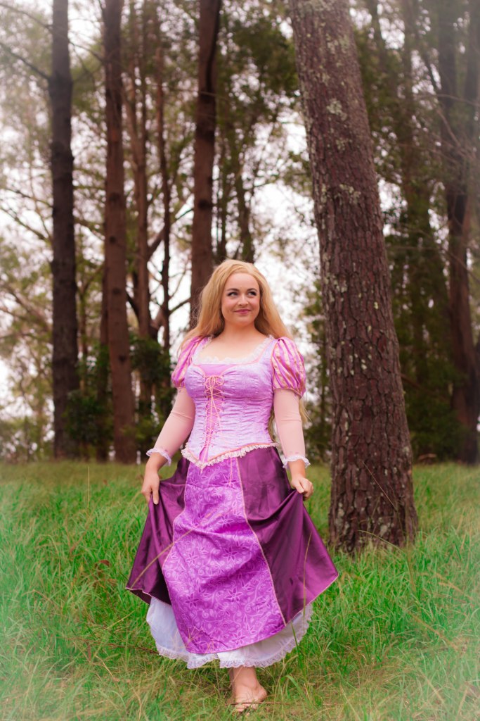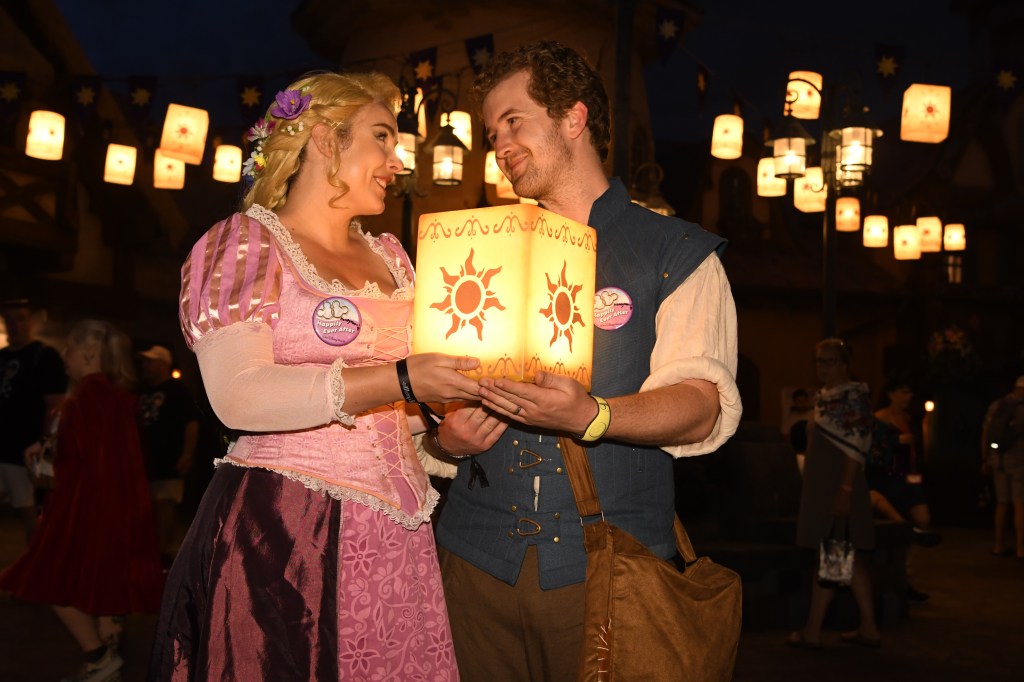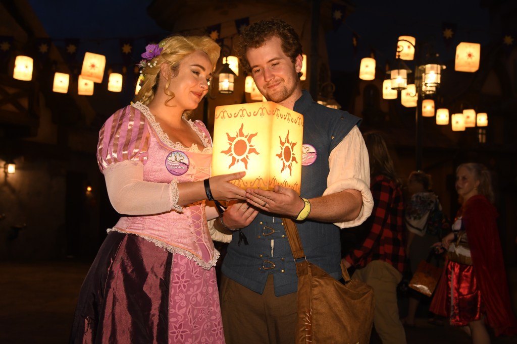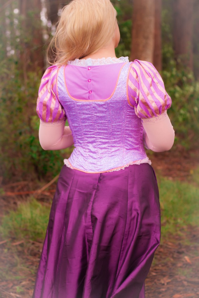 Background : So there is the really cool photo op in Magic Kingdom where you can take a photo with one of the glowing lanterns from Tangled in the Tangled bathroom area of the park. Ever since I learned of its existence I thought it would be so cool to do it dressed as Flynn and Rapunzel. Thankfully adult’s are allowed to wear costumes in the park on party nights so I knew next time I were to attend one, I’d have to make the costumes for it