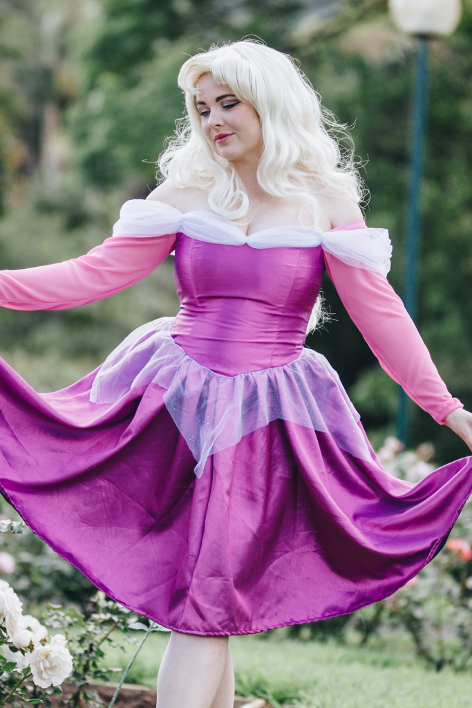 The bodice is self lined in the same fabric and has some black iron-on interfacing in the neck and arm holes to help with stability. It zips up in the side via an invisible zip. I even added pockets in to the skirt.