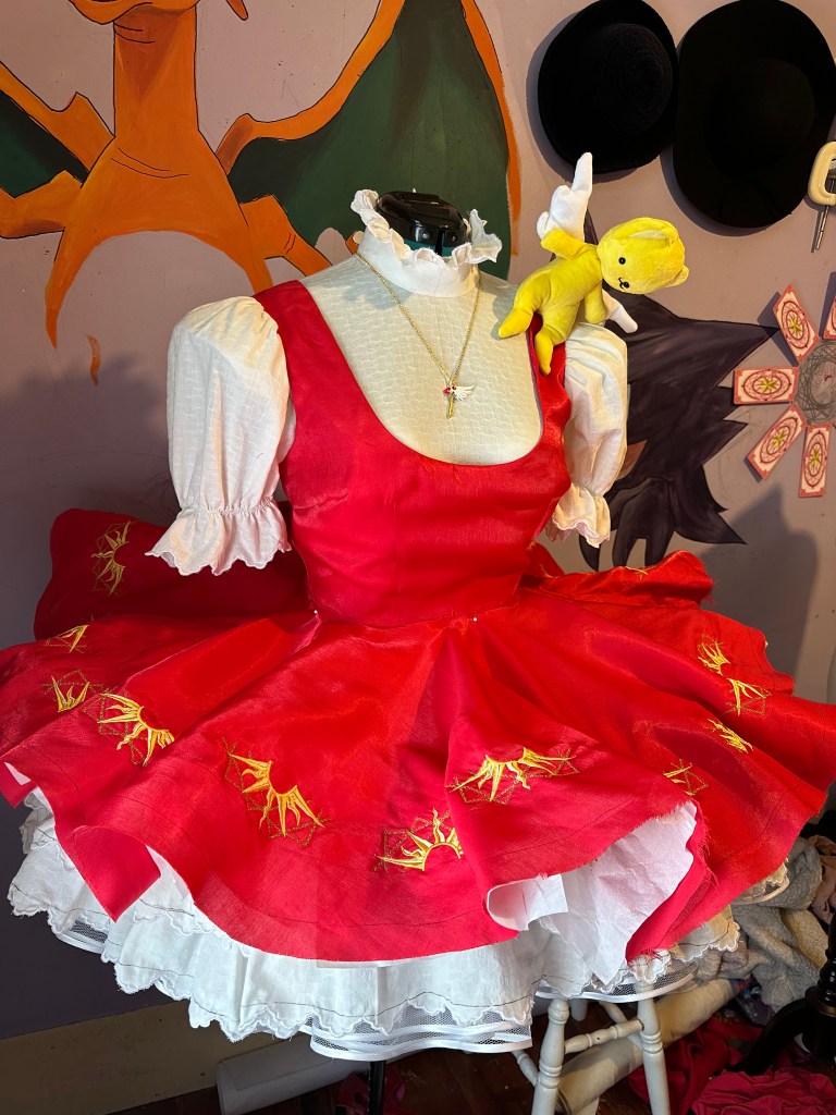 Background : In 2008 I made my very first costume ever which was Sakura’s opening dress from Cardcaptors. Fast forward to 2018 and to celebrate the 10 year anniversary of my first costume, I started remaking it. I then had a whole bunch of life events happen and the remake got put away in a suitcase where it sat in storage until 2024. I decided at the end of 2023 that I would try my hand at entering the cosplay competition at Overload again, it would be my first time entering since they had changed the rule that all costumes must have some sort of Japanese origin. A perfect chance to finally finish that Sakura costume. I pulled it out and very quickly realized that it would not fit me and the sewing was less than great so, I started again from scratch. Though I did keep the velvet bow from the 2018 version.